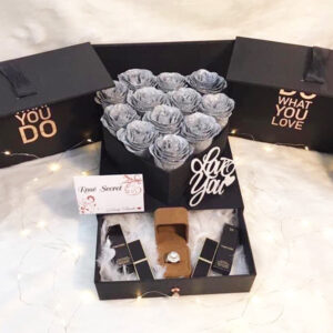 Hoa hộp trái tím vỏ carton đen